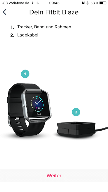 Kaum mit Strom versorgt, erwacht der Fitbit Blaze und kann mit der zugehörigen App, die für iPhone, iPad, Android und Windows-Phone verfügbar ist, eingerichtet werden. Die Fitbit-App führt dabei gekonnt durch die Einrichtung und erklärt alle wichtigen Funktionen: